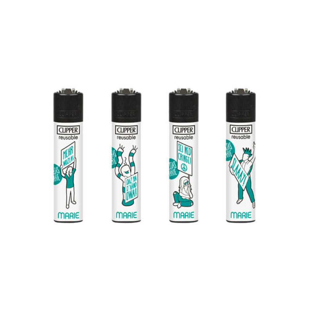 Der herausnehmbare Zündstift, der eigentlich zum Auswechseln des Feuersteins dient, ist unter Kennern und in der Szene das Stopf-Werkzeug für selbstgedrehte Zigaretten. Die zweite grandiose Funktion ist die sogenannte Kippflamme. Sie entsteht, wenn man das Feuerzeug seitlich nach unten hält. Außerdem passen CLIPPER® perfekt in die Öffnung einer Bierflasche und können diese vor Wespen oder andere Insekten verschließen.
