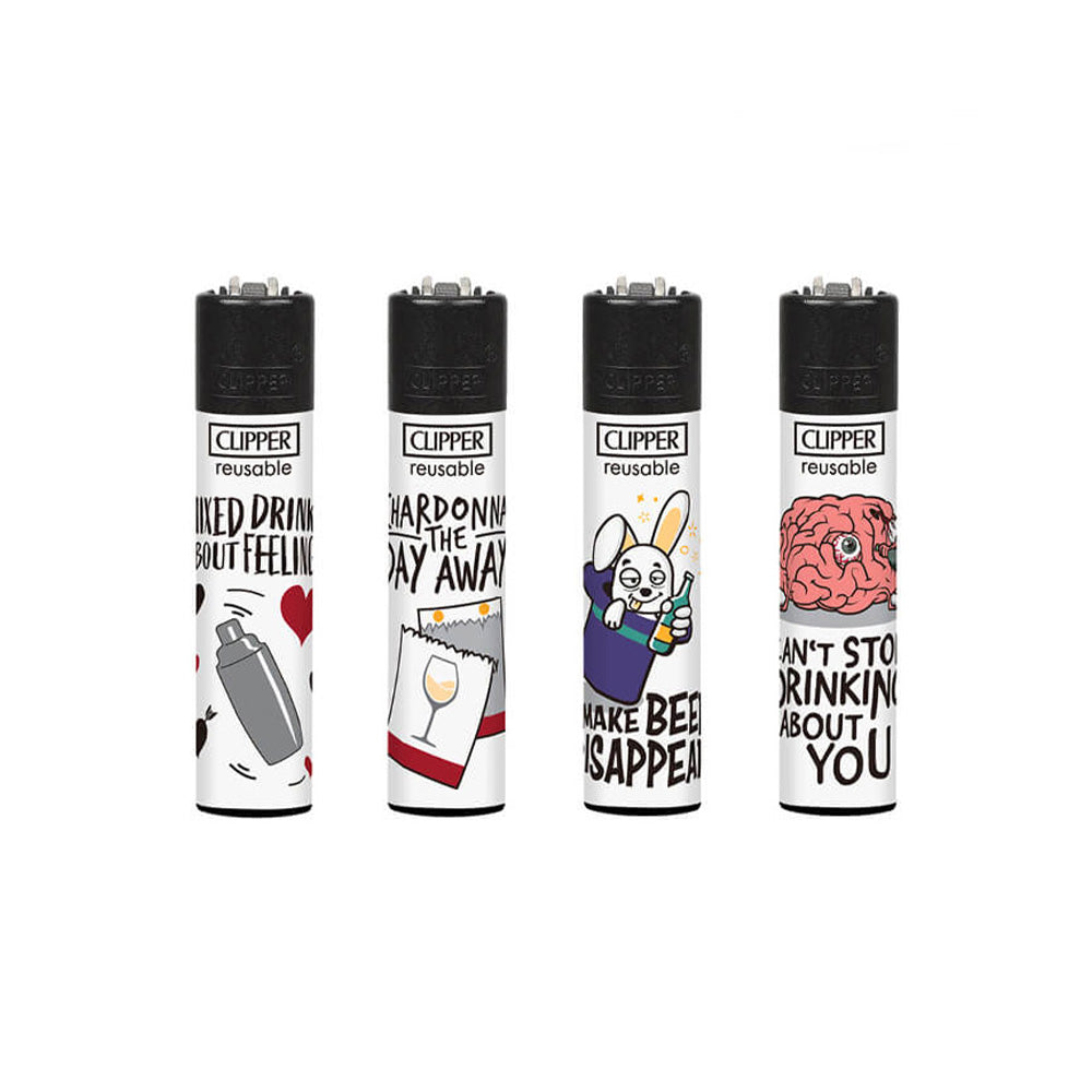Gebinde besteht aus 4 Clipper Sorten mit den abgebildeten Motiven und enthält insgesamt 48 Stück Feuerzeuge.