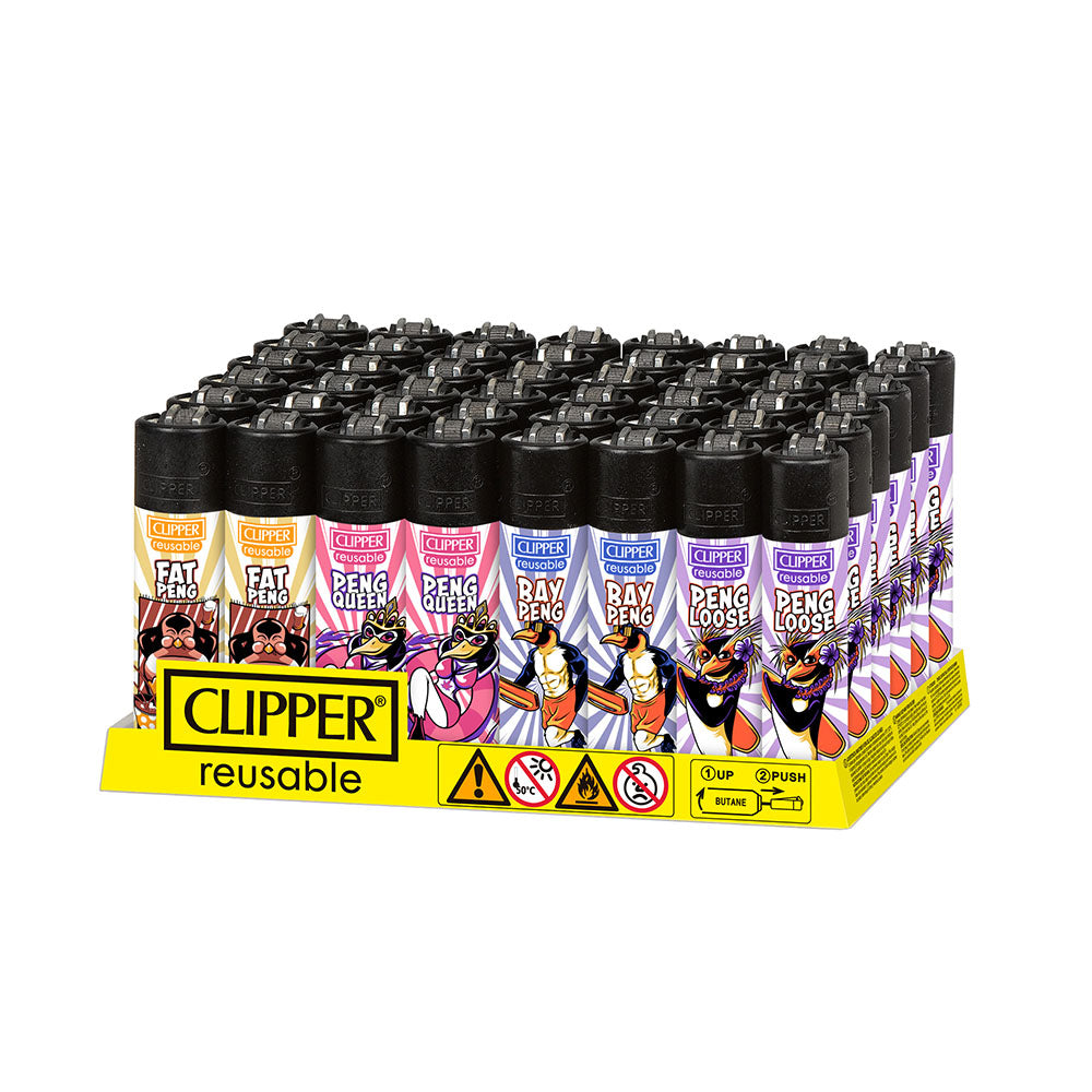 Gebinde besteht aus 4 Clipper Sorten mit den abgebildeten Motiven und enthält insgesamt 48 Stück Feuerzeuge.