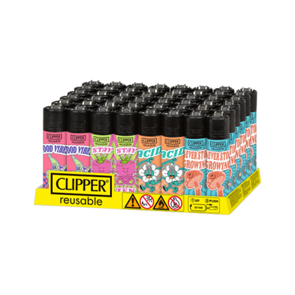 Gebinde besteht aus 4 Clipper Sorten mit den abgebildeten Motiven und enthält insgesamt 48 Stück Feuerzeuge.