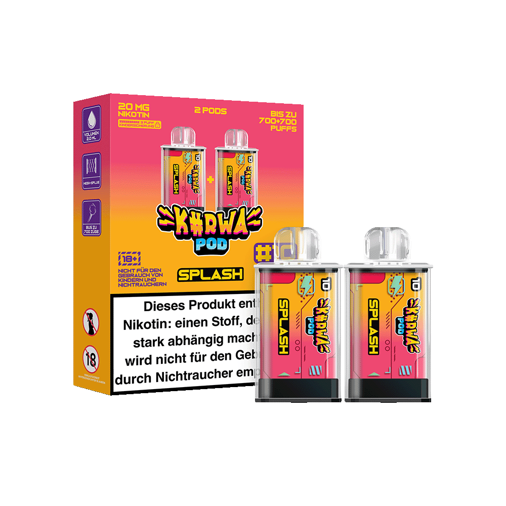 Das Kurwa Pod Nachfüll-Kit beinhaltet 2 vorgefüllte Pods mit jeweils 2 ml Liquid und der Geschmacksrichtung Nr.10 Splash : Erdbeere-Limonade. Sobald der Akku erschöpft ist, kann dieser aufgeladen und mit einem neuen oder alten Pod (sofern Inhalt vorhanden) wiederverwendet werden.