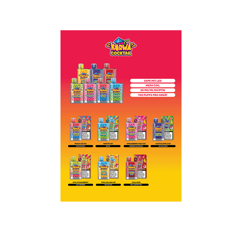 Sortenübersicht für die Kurwa Cocktail Vapes.