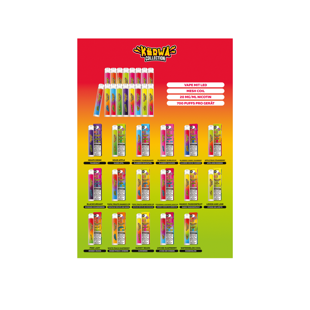Sortenübersicht für die Kurwa Collection LED Vapes.